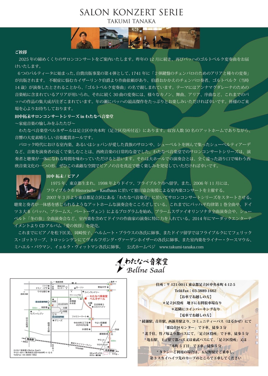第69回 田中拓未サロンコンサートシリーズ in わたなべ音楽堂
